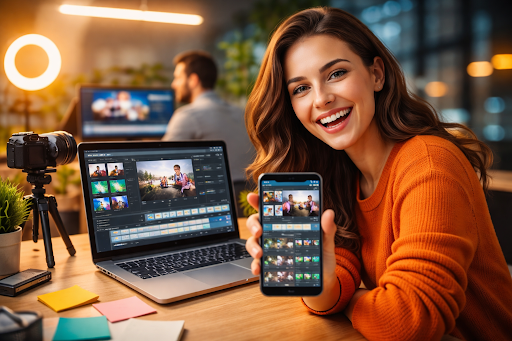 Unternehmen können Marketingvideos, Produktvorstellungen oder Erklärvideos erstellen, ohne große Teams zu benötigen. Gleichzeitig können Creator regelmäßig Inhalte veröffentlichen, ohne im Schnittprozess festzustecken.